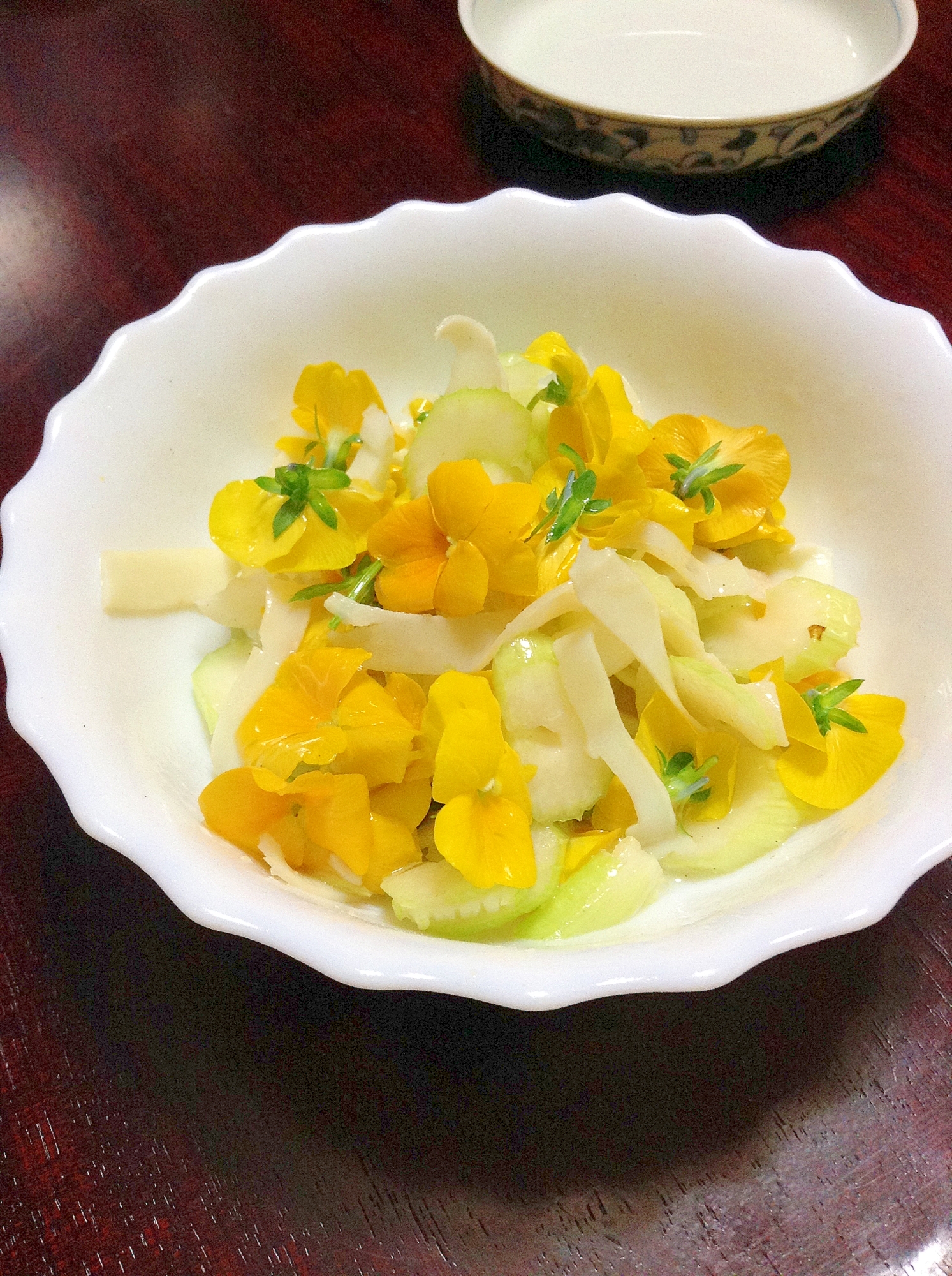 食べられる花レシピ セロリとイカクンの花マリネ レシピ 作り方 By とりあえず乾杯 楽天レシピ